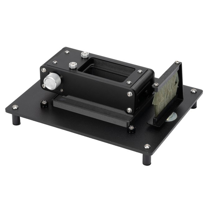 This kit pairs our Pro Film Carrier 35 MK2 with one of our core Pro accessories, the Pro Mount MK2. This kit will allow you to level out your film scanning plane when you’re working on an uneven surface and adds an anti-static dust brush that your film passes through before being scanned. We also have a host of modular accessories being designed for special purposes with the Pro Film Carrier 35 MK2 to make this a true professional tool.
